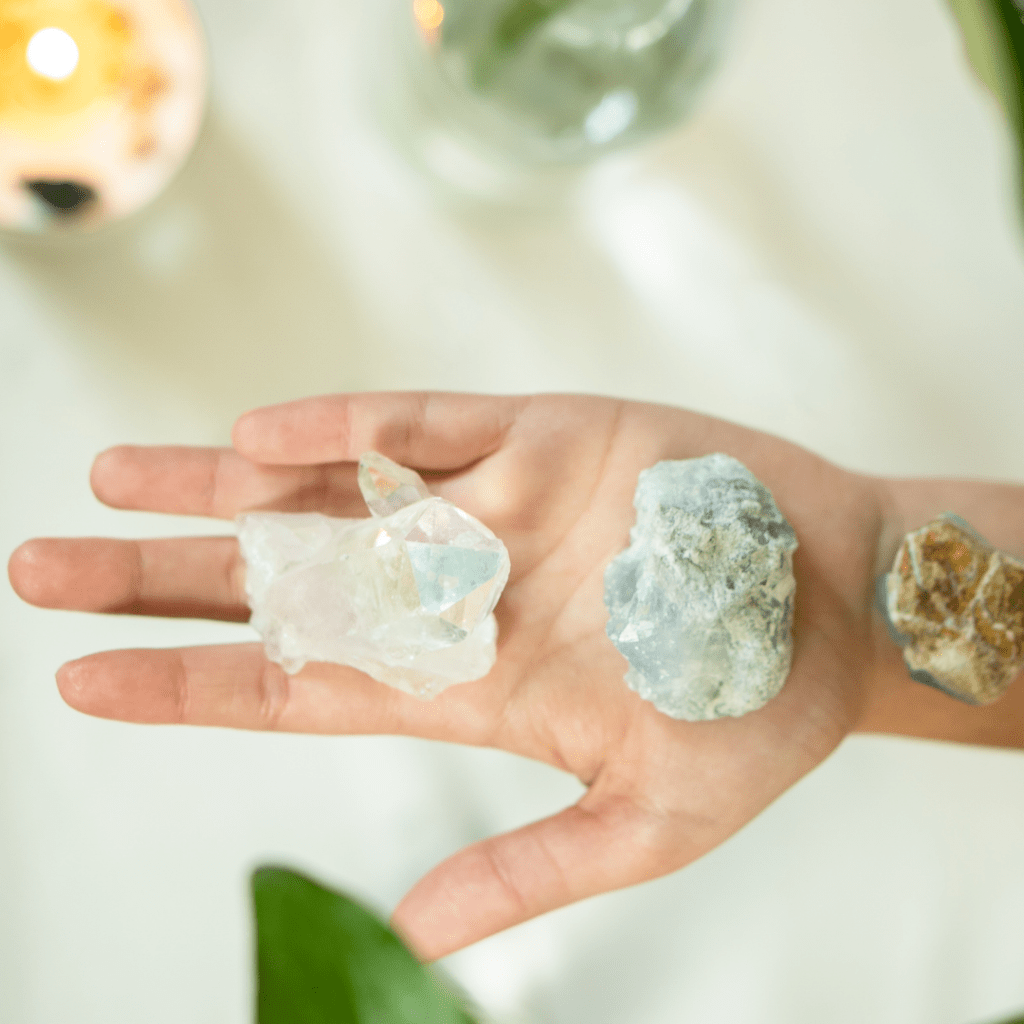 Crystals are wonderful allies that bring specific energies to support the healing process. I will use a dowsing crystal to read your chakra energy patterns and dowse for crystals to place on your on and around your body and chakras to get your energy flowing.