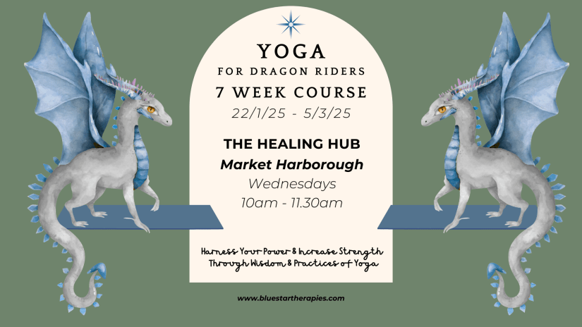 Yoga For Dragon Riders 7 Weeks Semi-Private Course - Only 4 spaces available Includes personal tuition in studio, resources, support and connection available through private Telegram group @ The Healing Hub, 19 Nelson Street, Market Harborough LE16 9AX Wednesdays 10am - 11.30am 22/1/25 - 5/3/25 Exchange: £154 (£22 per class) option to pay £66 on booking, £88 on 7/2/25 1 Space remaining - Contact me to claim it!